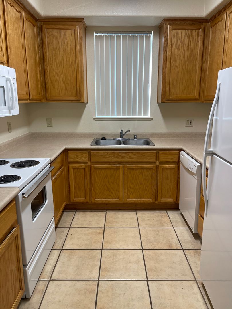 Our 3-bedroom 2 Bath Apartment homes offer tile flooring, high ceilings, gas fireplace, central heat and air, full size washer and dryer in every unit. The kitchen offers a full-size refrigerator, dishwasher, microwave, electric range and disposals. Patios and balconies are accessible from the living room and bedroom.